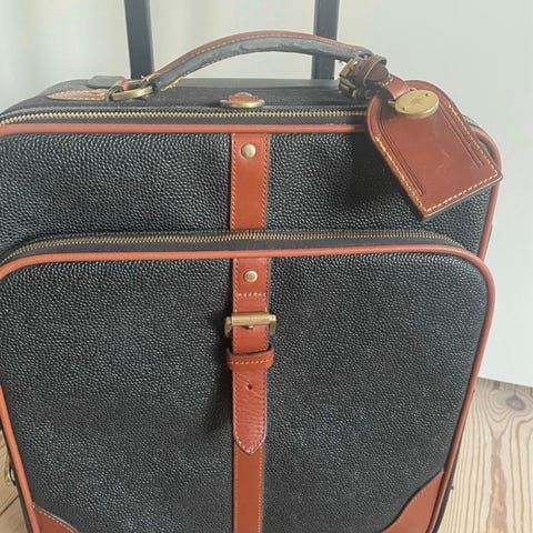 Mulberry læder kuffert til unisex brug. Kufferten er fremstillet i læder og har hjul og håndtag til nem transport. Indvendigt er den foret med stof og har stropper til fastgørelse af indhold. Det ene hjul defekt se billede