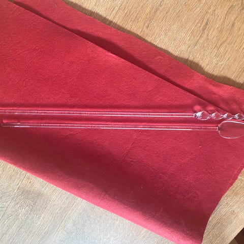 4 Glasblomster. Glasblomst pind med transparent blomst i toppen i klar glas. Håndlavede glasdekorationer, velegnet til pynt eller dekoration.