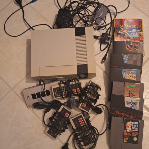 Nintendo snes med 8 spil og adapter til game boy spil, 2 controller