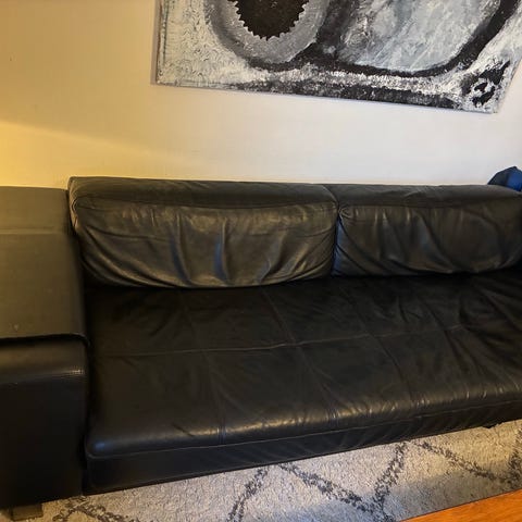 Flot designer sofa i creme læder fra Bolia og læder lænestol ( ukendt mærke ) sælges samlet. Sofaen skal lige rengøres lidt hvis man synes. Begge er brugte men fine. Røg og dyrefrit hjem, dog en ferie hund til tider som aldrig kommer i møblerne. Samlet 1500kr. Stolen mangler en dims under det ene ben venligst se sidste billede, men rokker ikke af den grund