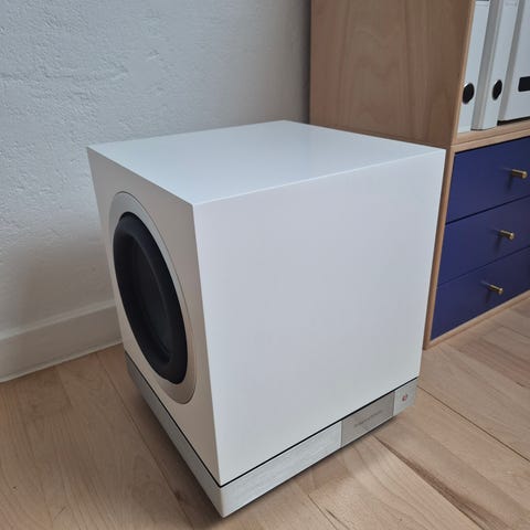 Buchardt S10 subwoofer i sort farve. Subwooferen har en stor driver og multiple tilslutningsmuligheder på bagsiden, herunder XLR og RCA. Kabinettet er udført i sort materiale med en aftagelig frontgrill. Designet til brug i lydsystemer for at forstærke baslyd.