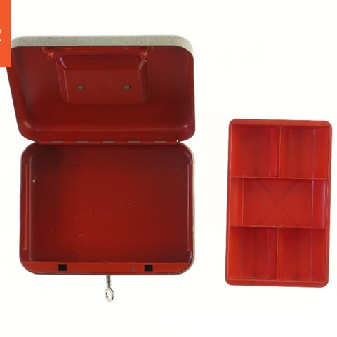 Sort metal kasse, der måler 20x16 cm. Den har et håndtag på toppen og en nøglelås på forsiden. En zebraformet nøglering og en gul nøglesnor følger med, så du kan låse dine ting inde i kassen i sikkerhed. Kassen åbnes med en nøgle og har indvendige rum til organisering af indhold. Til blandt andet penge, små legetøjsdimser, Pokemon kort eller andet legetøj. Også sjov når der skal leges købmand.