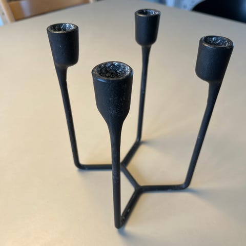 Dette er en hvid lysestage med en unik, krum form, der kan holde et lys. Den har en glat overflade og en solid base. Størrelsen er 20x8 cm, og det er ideelt til dekorative formål eller som en funktionel lysestage.