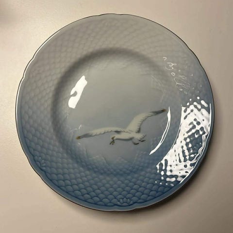 Mågestellet Sæt med seks porcelæns tallerkener med guldkant fra B&G (str. Ø 1...