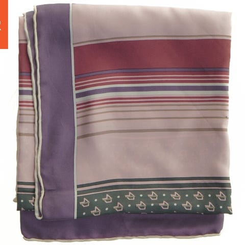 Dugen er rektangulær og måler 28,5x135 cm. Den har et enkelt design med et farvetema i lilla nuancer. Materialet fremstår let og gennemskinneligt, og det viser lidt krøl og brugsmærker.