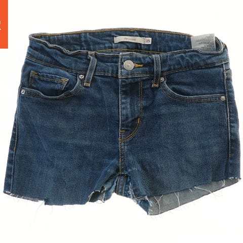 En par denim shorts fra Levi's med en klassisk blå vaske farve. Shortsene har fem lommer, inklusive to baglommer. Der er traditionel lynlås og knaplukning foran. Bagetiketten viser Levi's mærke med modelnummer 510 - Skinny.
