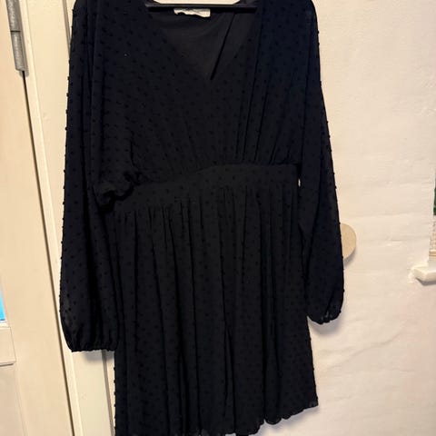Vila Hverdagskjole i sort farve, størrelse 40, lavet af polyester. Kjolen har et let og gennemsigtigt materiale med elastisk og rynket detalje ved halsudskæringen og korte ærmer. Velegnet til hverdagsbrug.