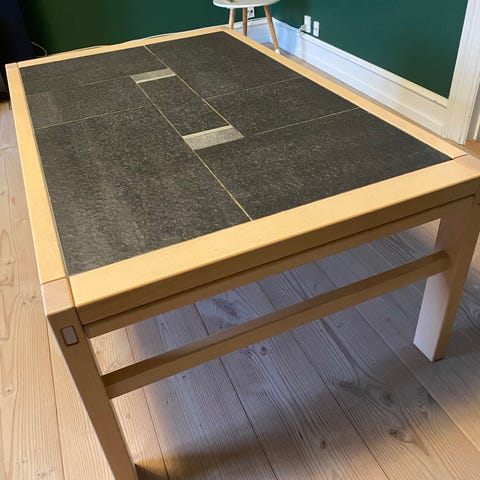 Gangsø kakkel masiv bøg sofabord med udtræksskuffe og udtræksbord.