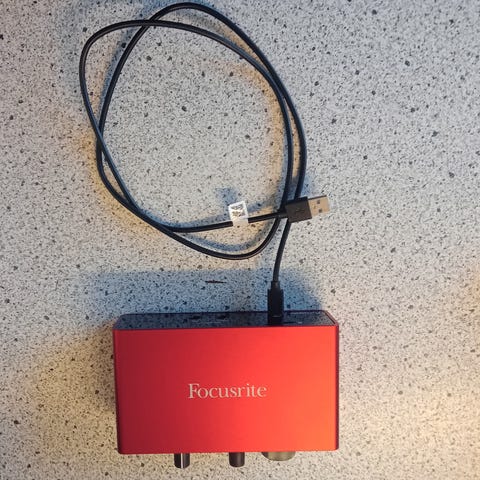 Næsten ny Focusrite Scarlett 2i2 sælges med tilhørende mic arm til bord montering.