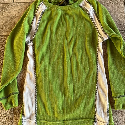 Klar til skiferien? Her er to brugte, men gode merinouldundertrøjer. Den grå er fra Ullrokken, den sort-lilla er fra Pierre Robert.