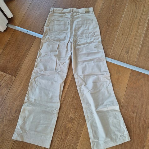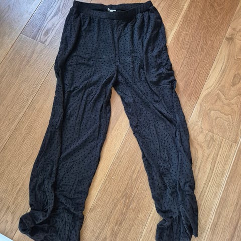 Disse bukser til små børn har et stribet mønster i grå og hvid. De er designet med en elastisk linning og en mørkeblå snor til justering. Bukserne har også lommer foran og ribkanter nederst. De er ideelle til små børn med størrelse 68.