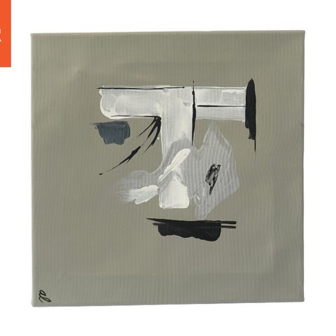 Dette er et maleri med abstrakte motiver i en sort træramme. Bagpå maleriet er der håndskrift, som muligvis angiver kunstnerens navn og årstal. Maleriet har en størrelse på 22x4x27 cm.