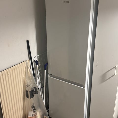 Hvidt elegant side by side Samsung RST27REHW1 køle-fryseskab med indbygget is- og vanddispenser, og lavt lydniveau på ca. 39 db. Hvidt kabinet med flere hylder og opbevaringsrum i døren. Model til 230V/50Hz strømforsyning med NEA/ESALM/K21 kompressor. Køleskabet har en indre volume på ca. 359 liter med 5 glashylder og 2 grøntsagsskuffer. Fryseren har en indre volume på ca. 184 liter med 4 hylder og 2 skuffer. Ismaskinen virker ikke pt.