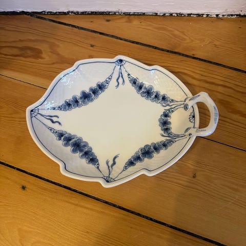 Bing & Grøndahl, bladformet fad nr. 198 fra Empire stellet. Ca. 19 x 14 cm. I meget fin stand.