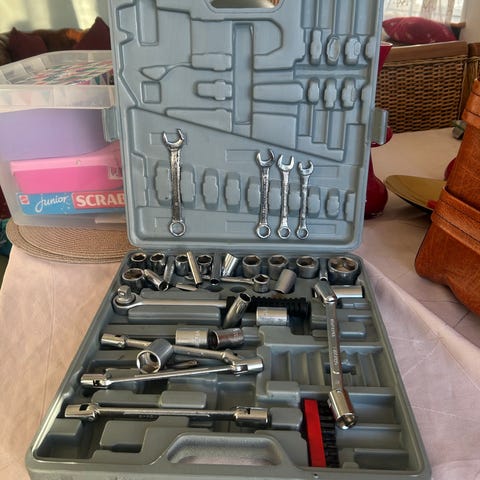 Værktøjssæt bestående af 6 dele inklusive skruetrækkere, skiftenøgle, skruenøgle, tænger og målebånd. Leveres i en orange og gennemsigtig opbevaringskasse. Sættet indeholder værktøj til forskellige formål og reparationer.
