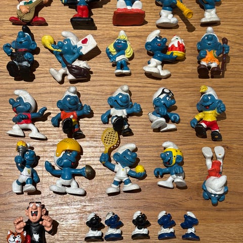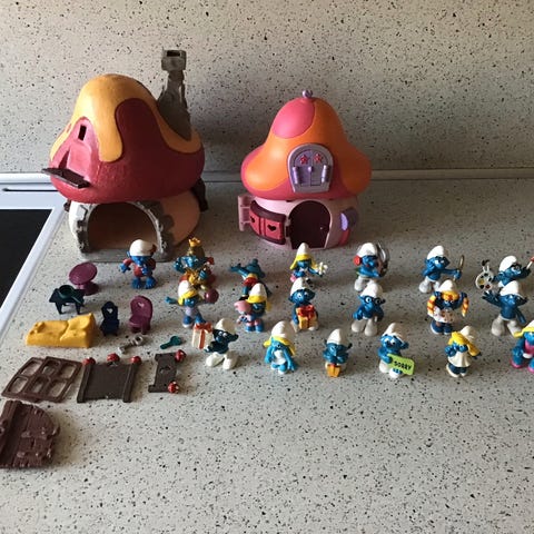 23 smølfer og et hus vil tro de fleste er fra 70-80 erne der står peyo/schleich under de fleste