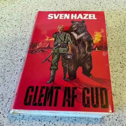 Sven Hazel Jeg så dem dø - Bog. Bogens omslag er rødt med illustration af to gravsten. Indeholder tekst på dansk og er en trykt bog.