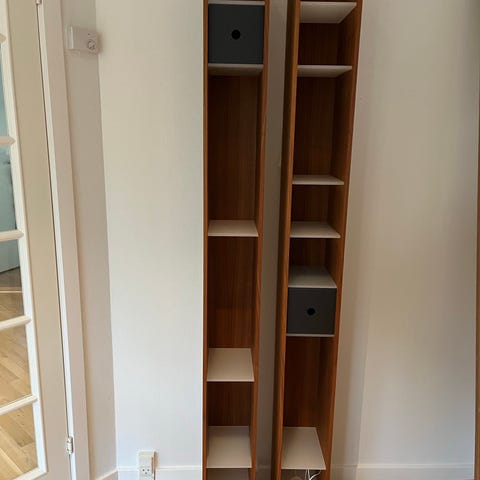 2 stk flotte skulpturelle CD holdere fra Naver. De er udført i kirsebærtræ og rummer hver 45 CD.