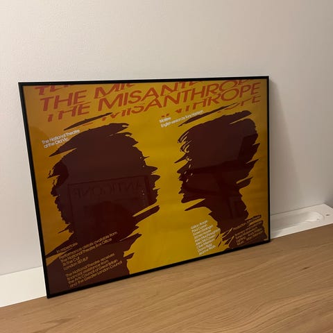 Plakat fra National Theatre London fra forestillingen Antigone i sort ramme
