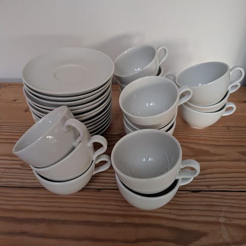 Stel med ni kopper og otte underkopper. God stand og sælges i forbindelse med flytning, så byd gerne! Afhentes i Greve.