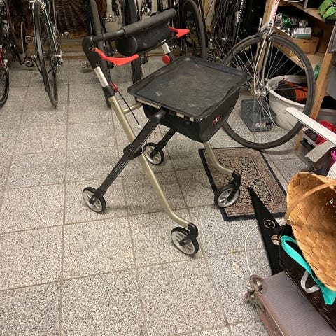 Rollator med sæde og bremser