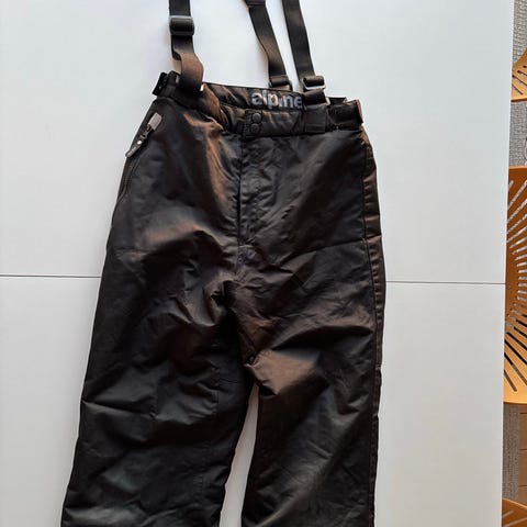 Skibukser, turkis, str. 128 (7-8 år). De fremstår nye. Er til alpin - der er plads til skistøvlen i buksebenene.