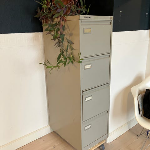 Arkivskab i mørkegrøn metal med 8 skuffer,fra RONEO fra starten af 70’erne,hvor produktionen er flyttet til England.
