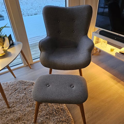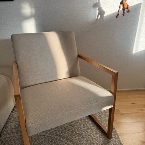 Lænestol Kalundborg sandfarvet stof/natur eg. Fremstår som NY.