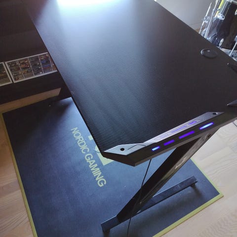 Fedt gamer bord med Carbon overflade og kopholder 60 gange 120 cm