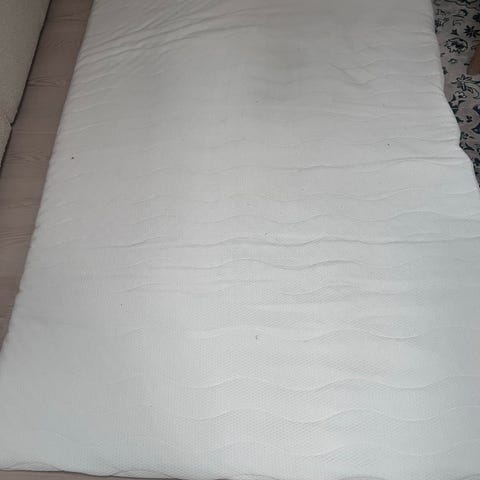 Tynd og let topmadras 140x200 aldrig brugt samt to lagner i samme mål (100% bomuld) sælges.