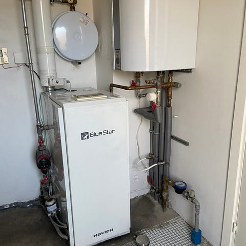 Oliefyr Kedel Brænder varmtvandsbeholder 110 liter alt virker og i god stand eller bud er nedtaget