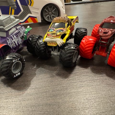Forskellige monster trucks 3 store og 5 små.
