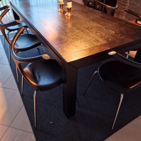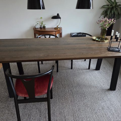 Fint massivt træbord, er i tvivl om hvor det er fra, det har lidt mærker efter ølflasker i det ene hjørne, udover det er der ingen tydelige mærker i bordet