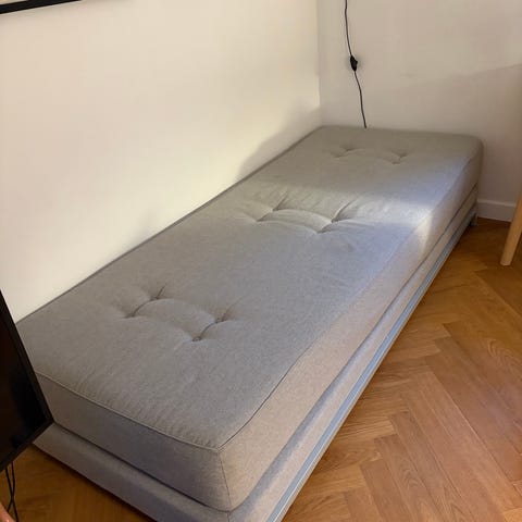 Daybed 70cm bred med mulighed for udtrækning til 140. Længde 190. 2 madrasser medfølger