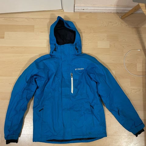 Columbia skijakke med hætte og med inderjakke i fleece, der kan lynes af og på. Jakken har været brugt få gange og er i flot stand. Kan afhentes - sendes ikke.