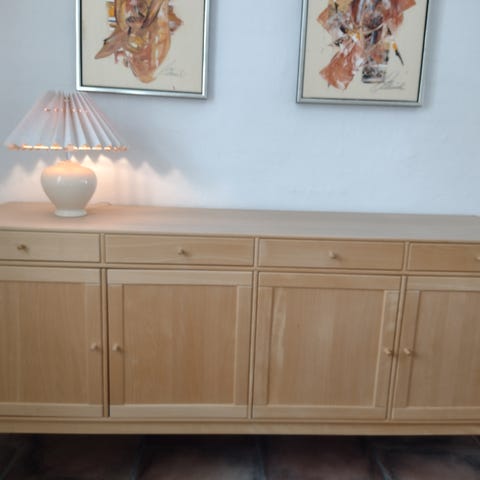Skænk i lyst bøgetræ med skuffer og skabe