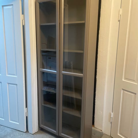 Næsten ny Ikea Billy reol med låger og hylder.