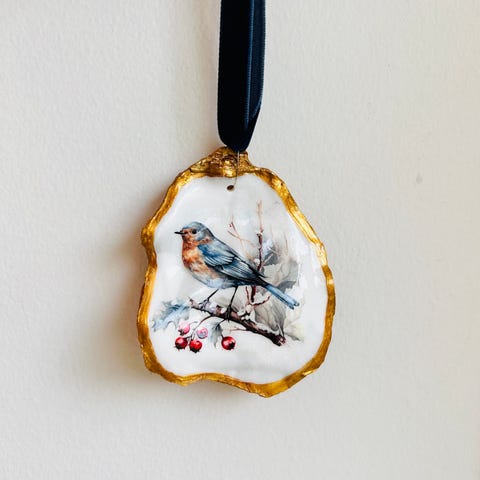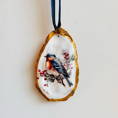 Smukke østers skaller på grene/bordet, konfirmation, fødselsdagsgave, bryllup, værts gave, Adventsgave, kalendergave, pakkeleg eller julepynt. Håndlavet med finish og guld på bagside.