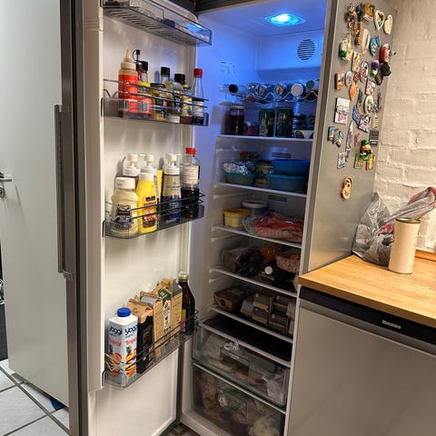 Blomberg køleskab med flere glashylder og opbevaringsrum i døren. Køleskabet har en hvid farve og indvendig belysning. Velegnet til opbevaring af madvarer og drikkevarer. Kun brugt i under 6 måneder og i god stand