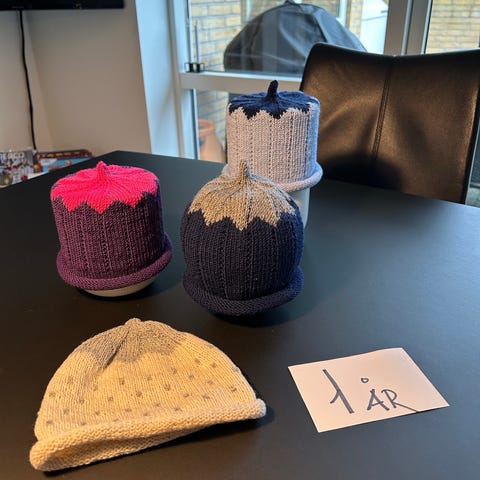 Håndstrikkede babyhuer i kvalitetsgarner - flere str. RESTSALG
