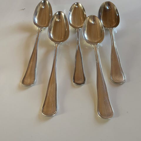 Bestik, Dobbelt riflet dessertske, 2.tårnet. 6 stk ialt. Måler 18 cm.