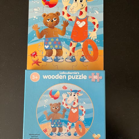 Det er stor brikker. Så er det godt for børn fra 1- 4 år.