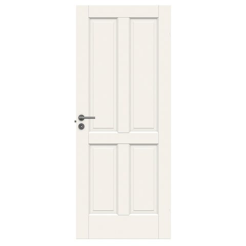Swedoor Craft 04L dør i hvid farve. Modellen har et klassisk design med flere paneler. Døren er egnet til indvendig brug og passer til forskellige boligindretninger.