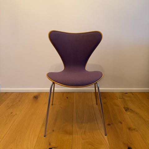 Fritz Hansen Arne Jacobsen Syver stol /model 3107/Gul. Flot gul farve.Fast ryg. Fin stand. Nogle brugsspor.
