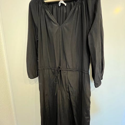 Fed denim kjole uden ærmer. Aldrig brugt. Store lommer med klap. Knapper og slids foran og bred elastik i livet. Bryst 2x52. Brug den med en fed t-shirt, sweater og boots. Desværre for stor. Nypris 999.