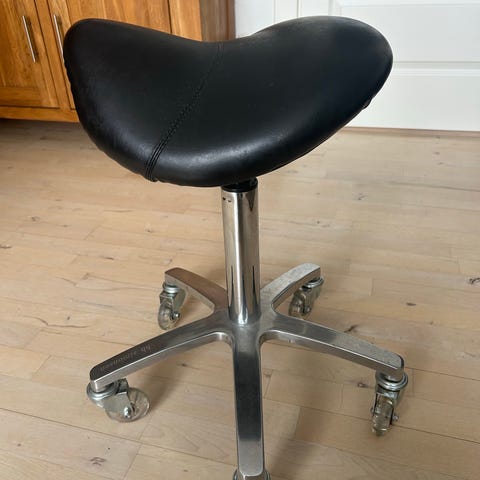 Frisørstol med pumpe til at hæve stolen, se foto. Perfekt til den nystartede frisør. Enten i butik eller privat. Også egnet som kontorstol.