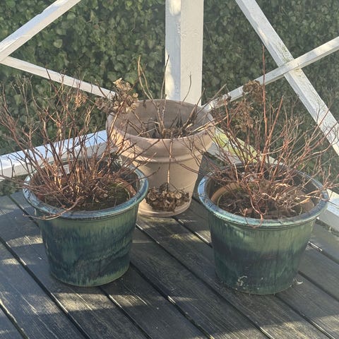 Sæt bestående af flere havekrukker i forskellige former og materialer, herunder rund og firkantet form. Farverne varierer fra sort, grøn til beige. Krukkerne har forskellige størrelser og kan anvendes til planter i haven eller på terrassen.
