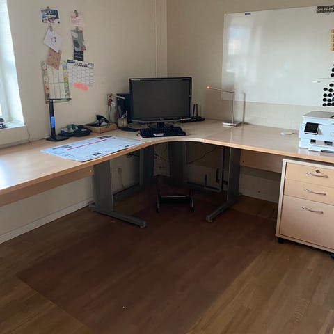 Mål: Længde 200 cm. Dybde 80 cm / 120 cm. Højde indstilles via bordben (står pt 72 cm)