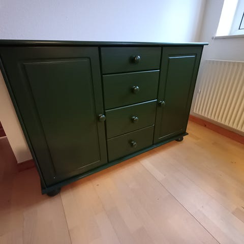 Skænk i træ, med tre skuffer. Mål b90 x d45 x h81 cm.