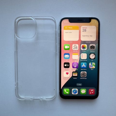 Iphone 12 i sort med 128gb i super god stand batteriet er på 100% der den lige er blivet skiftet inkl cover.